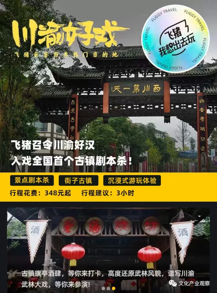 2021年5月,飞猪推出景点“剧本杀”旅游产品,首款飞猪定制沉浸式旅游产品设置在长江邮轮上,以民国故事为主线。