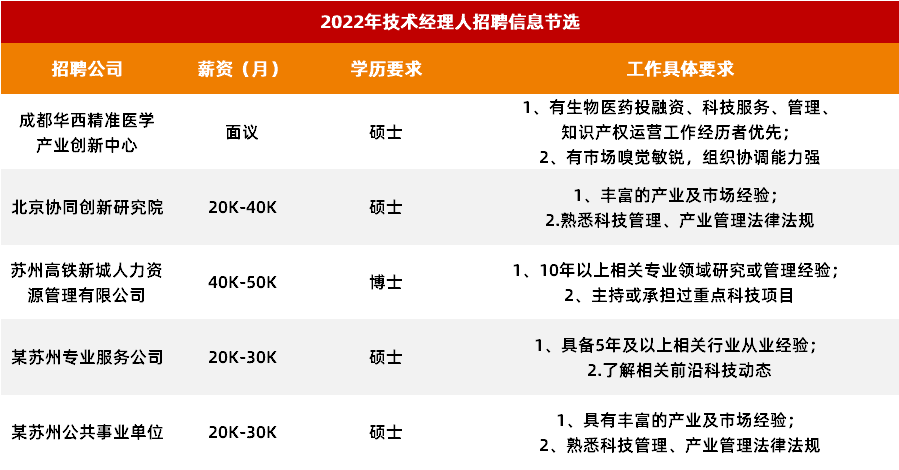 根据当前招聘市场来看,其对“技术经理人”的要求十分苛刻。首先从学历上,最低门槛是硕士,而且基本上要求是海外一流高校或者国内985、211级别;其次从工作经历上,要有5年及以上转化工作方面的经验;最后从能力上,“技术经理人”不仅要懂技术,还要懂市场,也就表明他们必须要集产品开发、市场评估、市场战略、投资、财务等核心能力于一身。