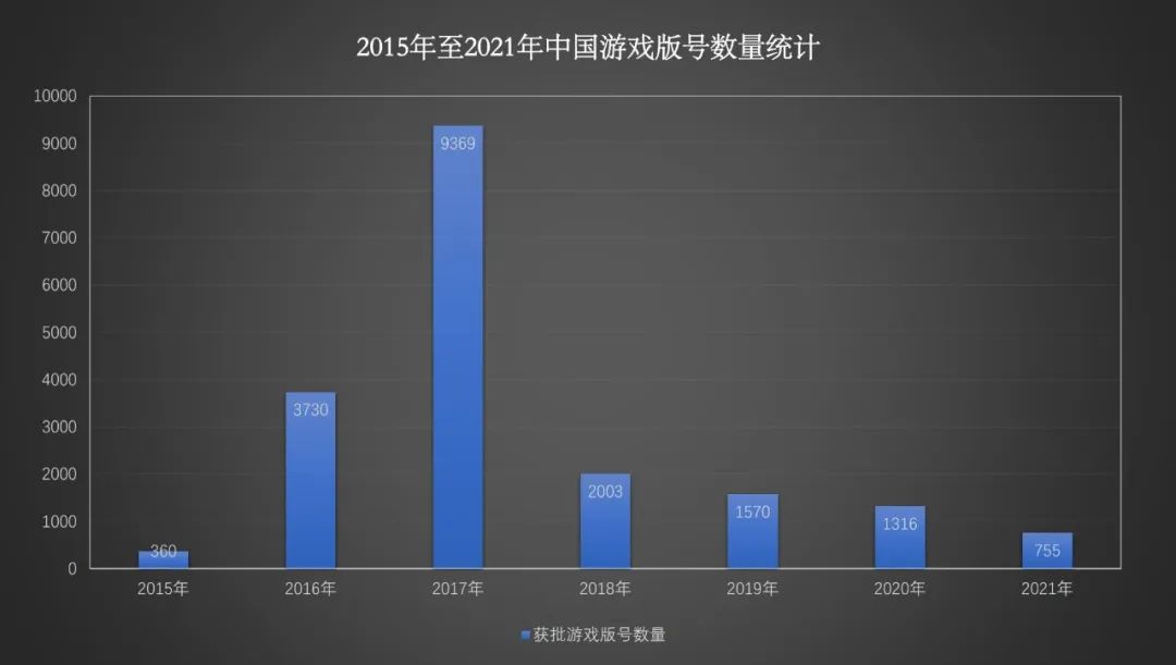 从国家新闻出版署的信息来看,2017年国内游戏版号发放数量达到顶峰,有9369款游戏拿到了版号,但2018年这一数据便断崖下跌至2003款,到了2021年,游戏版号发送总量仅755个,版号数量连续四年递减。由此来看,当下游戏公司们很难建立起一个长期稳定的市场预期。