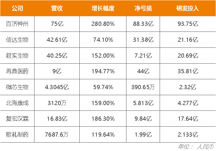 最会赚钱的百济神州也最会烧钱,近百亿的研发投入甚至超过恒瑞医药;信达生物、君实生物、再鼎医药、复宏汉霖等研发投入也在十几亿元到三十亿元不等。