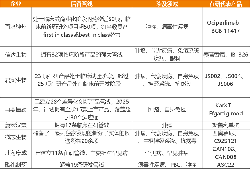 在如今生物医药多个产品已展现内卷的现状之下,企业是否拥有充足、含金量高且具备差异化的后备产品管线也将为未来在行业内的成功突围奠定坚实的基础。