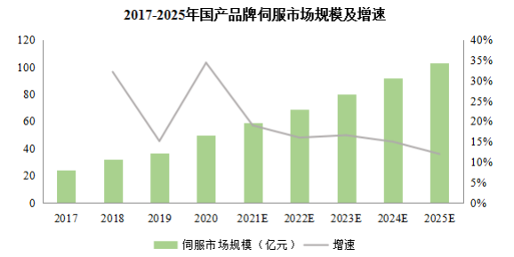 2020年国产伺服品牌的市场规模达49.64亿元,同比增长34.40%,国产品牌占我国整体伺服市场规模比例由2018年的22%上升至2020年的30%。