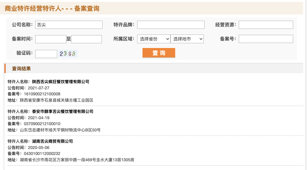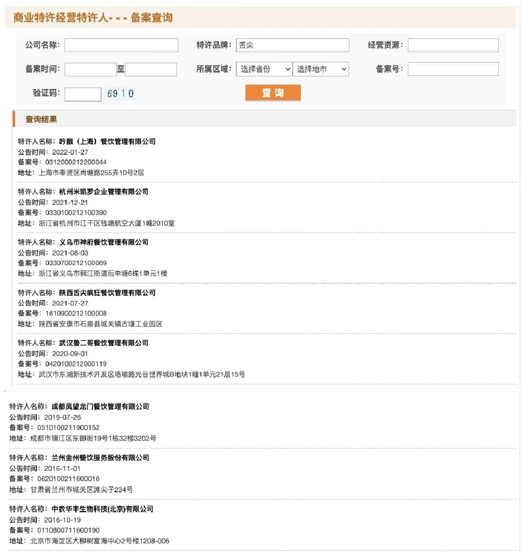 新消费Daily也特地去商务部查找了其加盟资质,无论是企业为“舌尖”还是品牌为“舌尖”,皆未找到“舌尖英雄”。