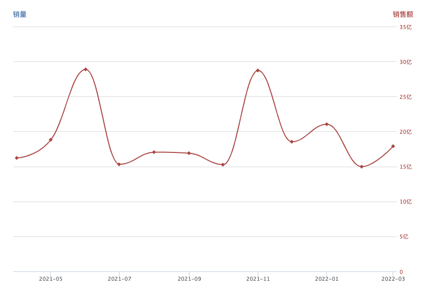 且在淘宝+天猫平台上,2021.04-2022.03一年内,我们熟知的几大预制菜品牌,销售额并没有过亿,仅有1000多万、6000多万等,可见C端市场并没有想象中火热。 事实上,从方便速食/速冻食品这一类目的全年的销售额分布来看,两大高峰期在6月、11月,有两个大的电商购物节,而1月-2月则是春节期间。