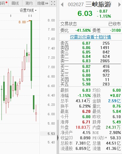 4月15日,三峡旅游(002627.SZ)股票复牌后进入第三个交易日,股价又跌了。