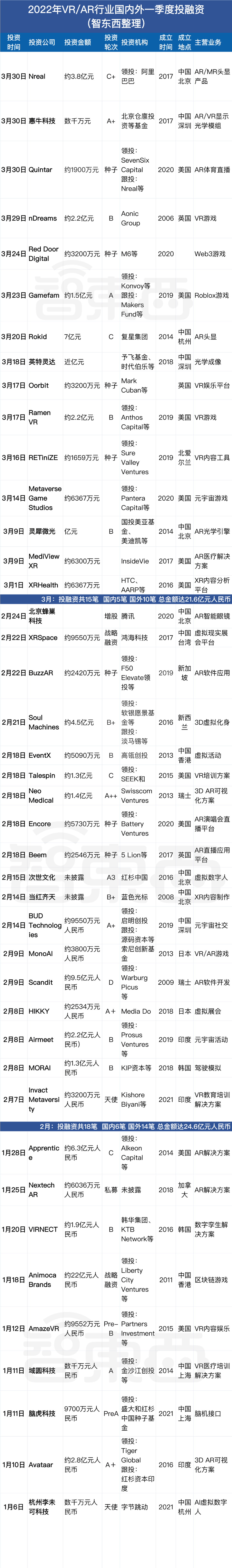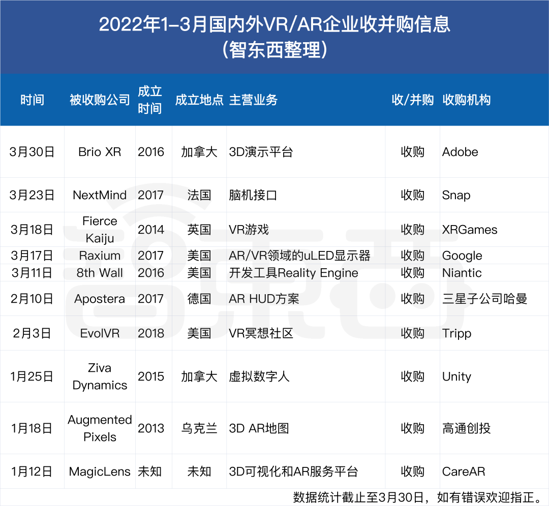 ▲2022年1-3月VR/AR企业收购事件(截至3月30日)