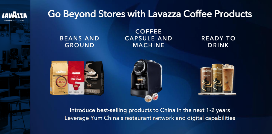 根据百胜中国去年发布的材料,合资公司计划在未来1-2年里从Lavazza的产品组合中引入更多的产品。