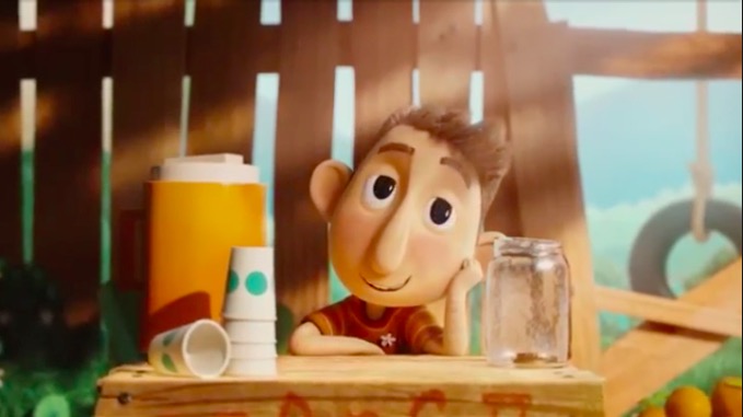 短片里卖橙汁的男孩和卖柠檬水的女孩,是一对从小斗到大的欢喜冤家。为了抢生意斗智斗勇,他们搞起了促销,扩张了店面,再后来,把路边摊斗成了两个庞大的快餐帝国。