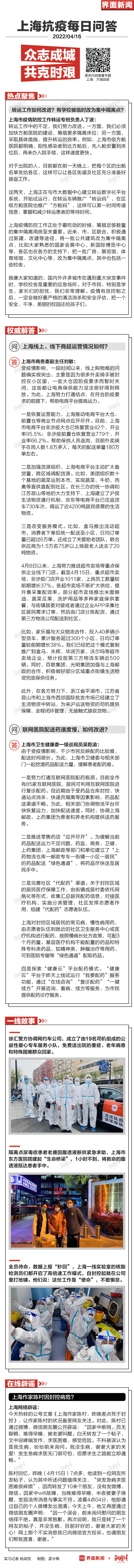 上海作家陈村因封控病危?转运工作如何改进?有学校被临时改为集中隔离点?线上、线下商超运营情况如何?……
