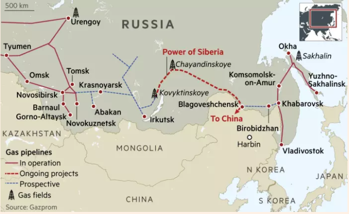 目前,西西伯利亚和东西伯利亚间并没有连通的管道,所以俄罗斯在东西伯利亚和远东地区的天然气只能靠管道出口到亚洲,西西伯利亚和亚马尔气田的天然气则仅能靠管道传输到欧洲。