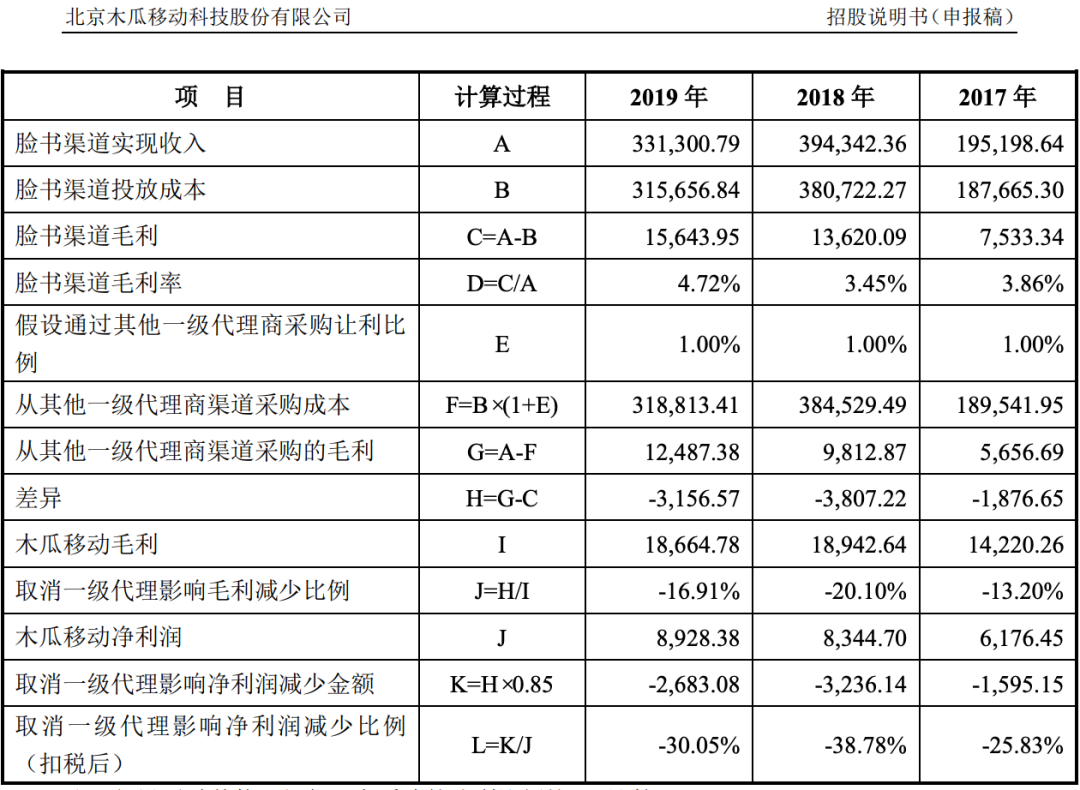 2017年、2018年、2019年,木瓜移动从脸书(Facebook)渠道实现收入19.52亿元、39.43亿元和33.13亿元,投放成本分别为18.77亿元、38.07亿元和31.57亿元,毛利率仅为3.86%、3.45%和4.72%,成本高企,盈利能力较弱。