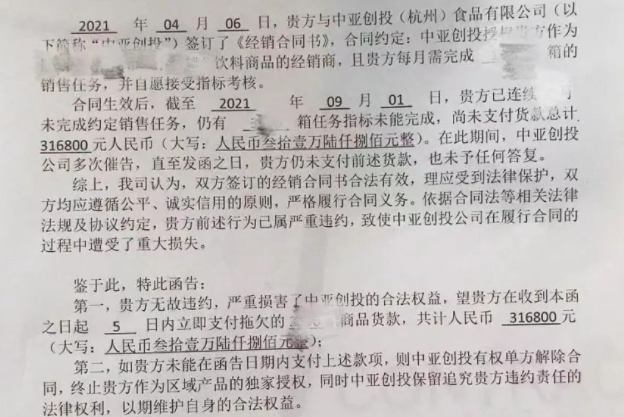 但签完之后小蓝罐市场极难打开,这也成了中亚创投不发货的理由,导致经销商们持续亏损。