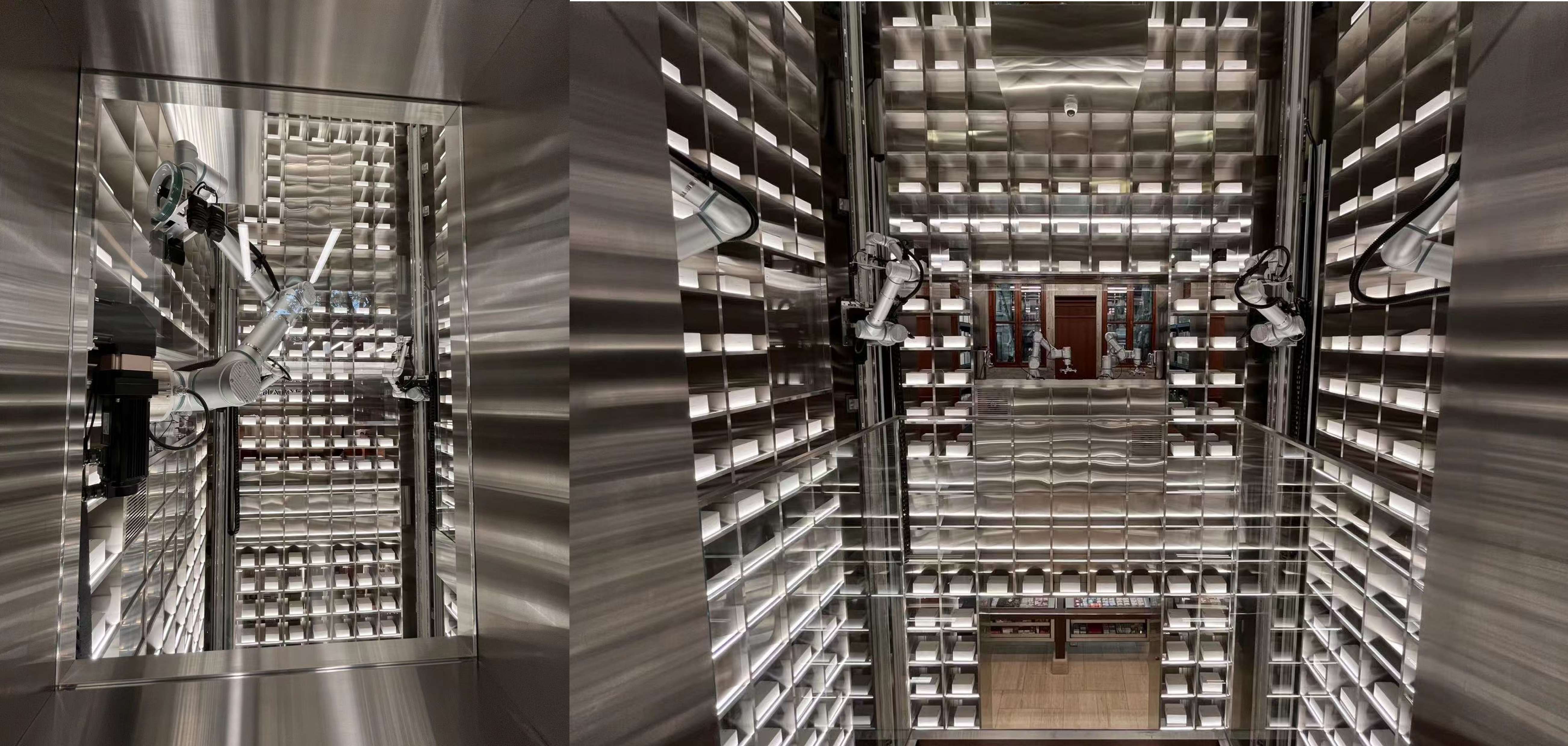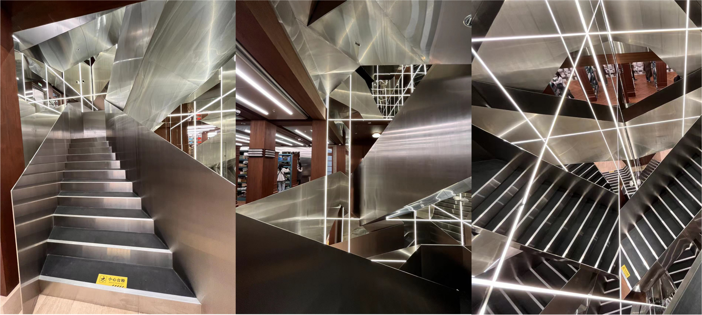 科技感满满的设计,更容易吸引新一代年轻消费者。在店内,四面的钛合金货架纵穿三层楼、四个角的机械手臂上下运作……据说这是全国唯一机械手臂盲盒仓库。前往二楼,映入眼帘的就是钛合金的金属科幻楼梯,配上大面积的镜子、激光般的白炽灯……让人恍惚穿越到了未来。