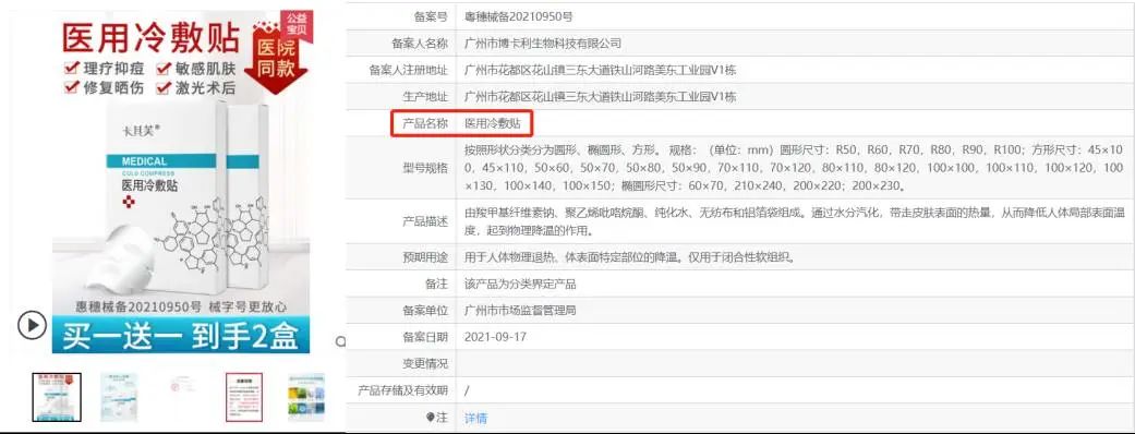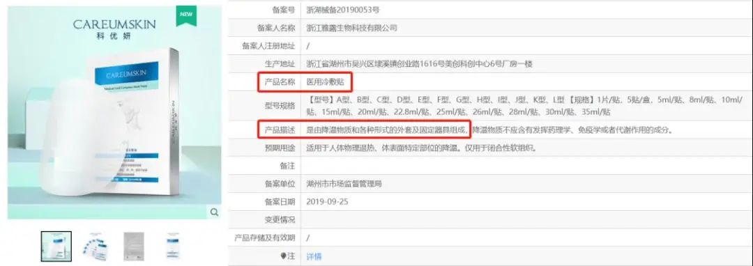 医疗器械监管和化妆品监管有很大的不同,分类更多也更复杂,创面敷料、医用冷敷贴等都只是其中很小的几个类目。但近几年械字号“医美面膜”爆火,医用冷敷贴赛道的品牌越来越多,在这种情况下,监管跟不上市场,就非常容易出现乱象。
