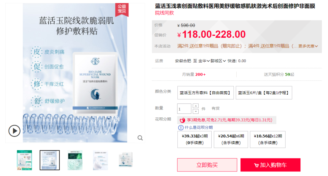 其中,值得注意的是,蓝活玉浅表创面贴敷敷料(川蓉械备20150141号)这款产品,活玉品牌的天猫店铺客服表示,该款产品叫创面贴,不会下架。