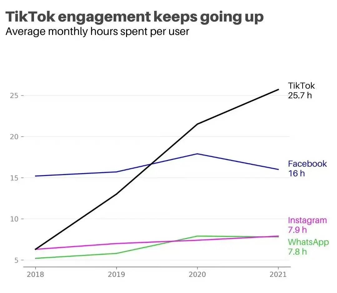 TikTok在海外的用户时长不断走高