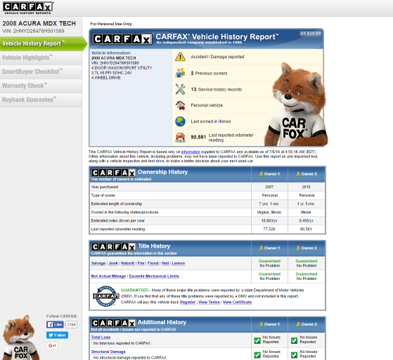 Carfax报告范本