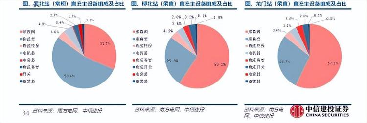 昆柳龙工程常规换流站和柔直换流站设备组成占比,数据来源:中信建投