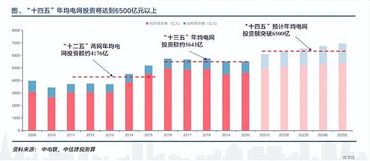 国家电网公司董事长辛保安此前披露,“十四五”期间国家电网计划投入3500亿美元(约2.23万亿元),推进电网转型升级。