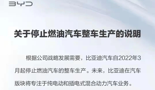 比亚迪4月3日宣布了停售燃油车的计划,将致力于发展纯电动汽车和插电式混合动力汽车。这也是全球第一家停售燃油车的车企,第一个敢站出来的一定是“勇士”,能做出这样的决定,比亚迪一定是经过深思熟虑的。
