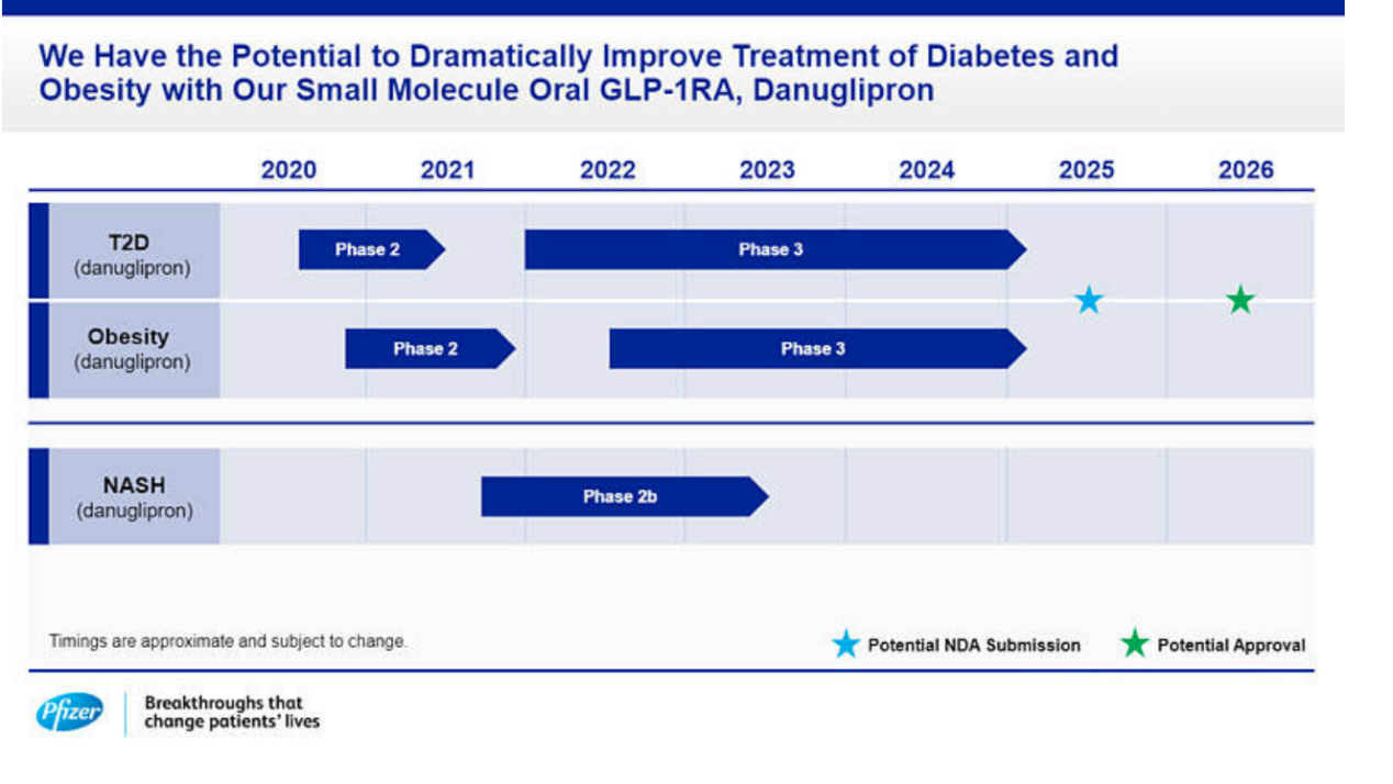 其中,礼来的GLP-1受体激动剂注射剂III期临床在去年获得积极效果。锐格医药的GLP-1受体激动剂则在去年完成I期临床。辉瑞的GLP-1受体激动剂在国外的I期临床研究也已完成。去年3月,辉瑞针对该药物的临床试验申请已在中国获得许可。根据辉瑞在投资者开放日披露的开发计划,这款药预计于2022年在国外开展III期临床,2025年申报上市。总体来看,礼来的进度略微领先。