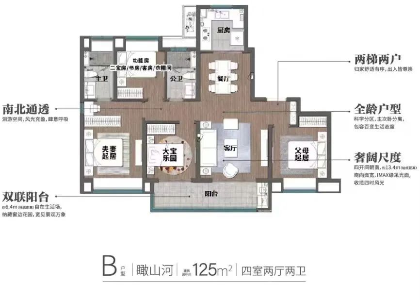 建筑面积约125㎡两梯两户大四房 收官热销中