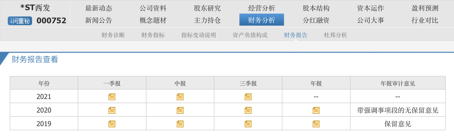 公开信息显示,2020年*ST西发年报的审计意见为“带强调事项段的无保留意见”,2019年年报审计意见为“保留意见”。*ST西发2021年年报披露时间为4月29日。