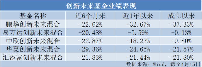 在5只创新未来基金中,鹏华旗下产品亏损幅度超过37%,其基金经理王宗合对市场判断失误,高位接盘多只股票。