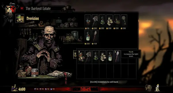 我们已经能感受到这款游戏想要带给玩家什么样的情绪,但这并不意味着玩家只能被动挨打或者默默承受。游戏里的许多道具恰好就是为了解决这些困难而设计的,例如:火把可以驱散黑暗、食物可以治愈受伤的英雄、绷带和圣水则可以止住流血和恐慌。玩家在游戏过程中遇到的困难,其实有很多的应对措施。这些道具恰好为游戏的玩法增添更多真实的设定。