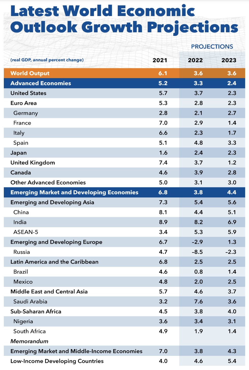 在其最新展望中,IMF预计,今明两年全球经济都将增长3.6%,相比该机构1月时的预期分别下调了0.8和0.2个百分点。这反映出俄乌战争以及随后西方国家对俄制裁所造成的直接影响,预计俄乌两国经济都将遭遇严重萎缩。