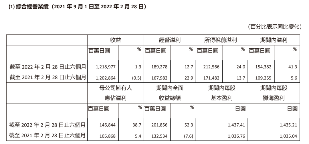 近日,优衣库母公司迅销集团公布了截至今年2月的2022财年中期报告,报告期内,迅销集团综合经营溢利总额同比增长12.7%至1892亿日元(约合人民币93亿);集团整体的总收益达到12189.77亿日元(约合人民币619亿元),同比增长1.3%。