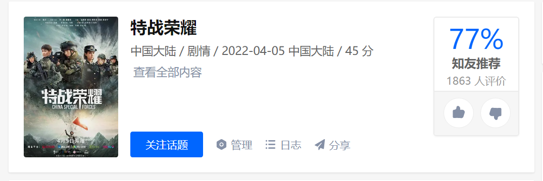 △《特战荣耀》知乎推荐度77%