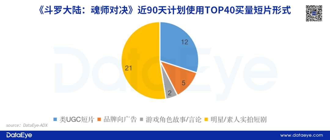 以最高计划投放数的素材为例,在吸睛点上,《斗罗大陆:魂师对决》用穿越进游戏的剧情,强调游戏的“沉浸感”,在画面表现力方面可圈可点。(更多案例请后台回复ADX试用)