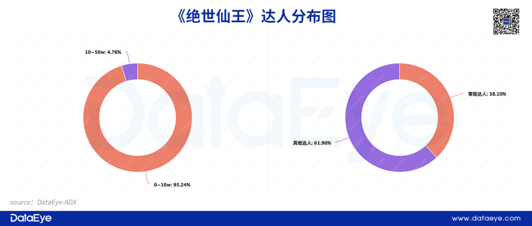 《绝世仙王》在主播选择上,以粉丝量低于10万的小型主播为主,占比超95%,并且常驻的签约主播占比也仅有38.1%。