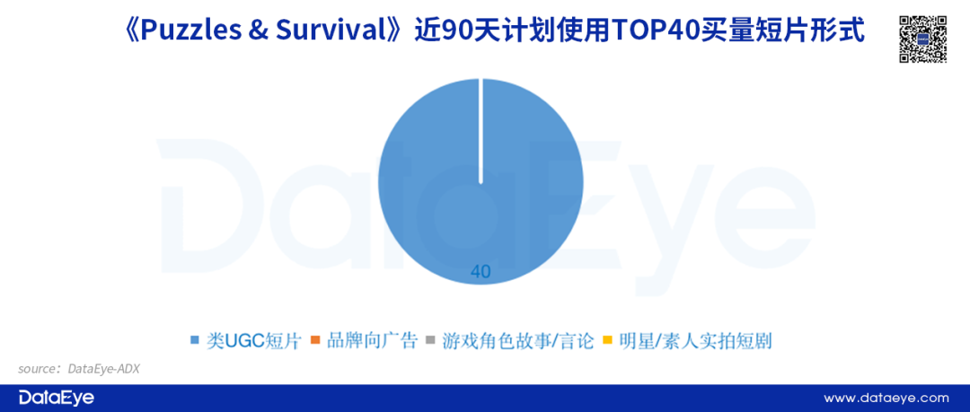 《Puzzles &Survival》TOP40计划使用视频均以类UGC短片形式呈现,可以避免用户对广告的抵触心态,第一时间展示玩法,更有利于转化。这也是目前国内厂商出海营销的主要方式。
