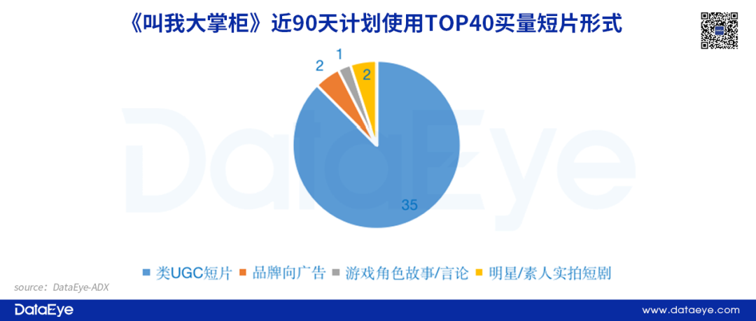 在创意形式上,《叫我大掌柜》以类UGC短片为主,此类视频创意形式更契合游戏休闲、轻松、经营的特性,能在第一时间就让用户感受游戏玩法,进一步加强素材转化率。