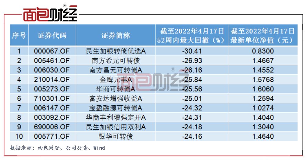 近期,部分债券型和偏债型基金回撤较大。民生加银、金鹰、华商、富安达、南方等多家基金公司旗下产品位居回撤榜前列。其中,民生加银转债优选A尤其值得关注,不仅回撤明显,当前单位净值还大幅跌破1元。