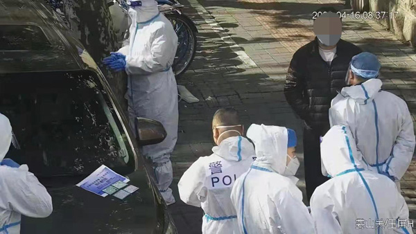 4月16日8时许,长宁公安分局天山路派出所民警开展街面巡控时,发现一男子正从一辆无任何标识的商务车中搬运出大量生活物资,但他只佩戴了普通医用口罩而无其它任何防护措施,民警于是上前对男子进行询问盘查。
