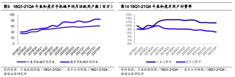 财报显示,虎牙2021Q4的付费用户停留在560万,比去年同期减少40万,斗鱼则是同比少了近30万。