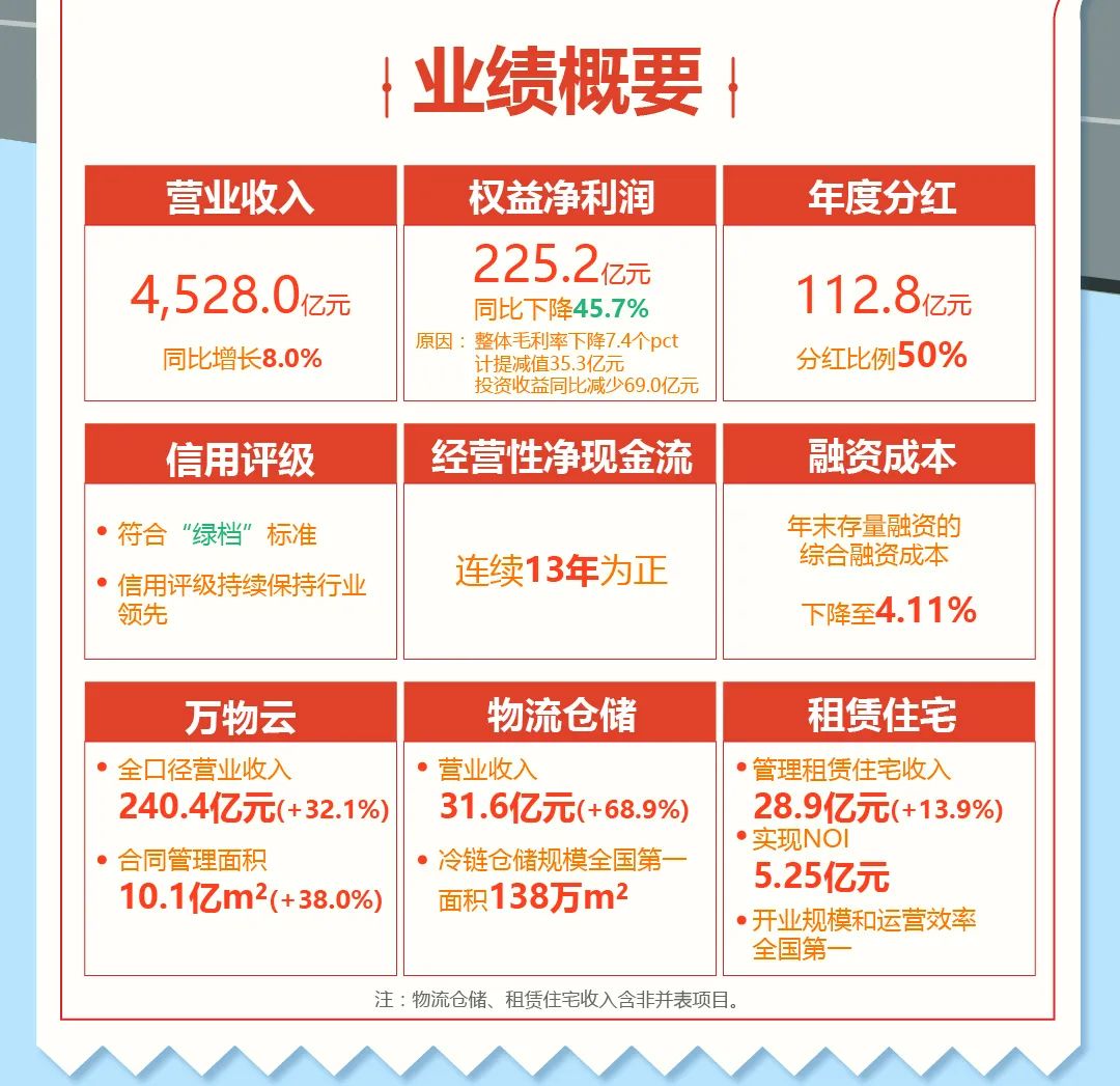 而据年报披露,万科在整体融资环境趋紧的行业背景下,净负债率和融资成本稳定在行业较低水平,扣除预收款项的资产负债率优化至68.5%,三道红线满足绿档达标。
