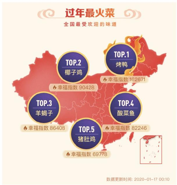 在大众点评2020年“年味地图”的可视化数据中,“椰子鸡”继“烤鸭”之后荣获2020年“全国最受欢迎的味道”第二名。
