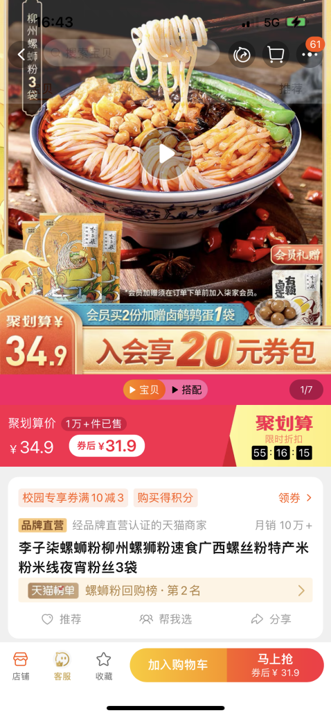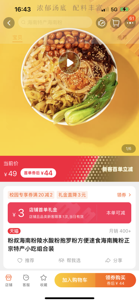 界面海南在淘宝APP搜索螺蛳粉与海南粉的速食产品发现,以速食螺蛳粉知名品牌李子柒旗舰店为例,其月销量是10万+,而销售海南各类粉的品牌粉叔旗舰店,其店铺热销的产品,月销量也仅为400+。由此可见,海南粉的品牌认知度并不高。