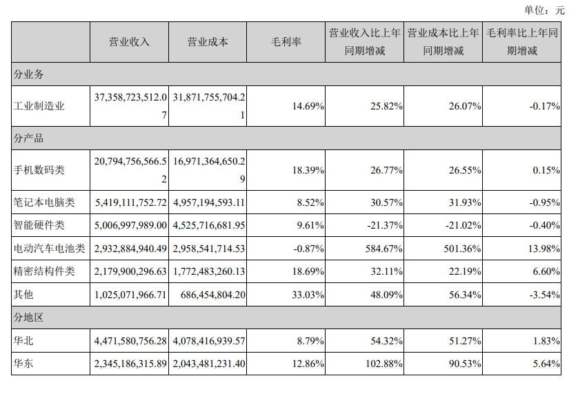 2022年4月12日,电池制造商欣旺达发布了2021年财报,电动汽车电池类营业收入达到29.33亿元,同比增长584.67%,营收占比从2020年的1.4%提高到7.85%,同时毛利率提升13.98个百分点,达到-0.87%。