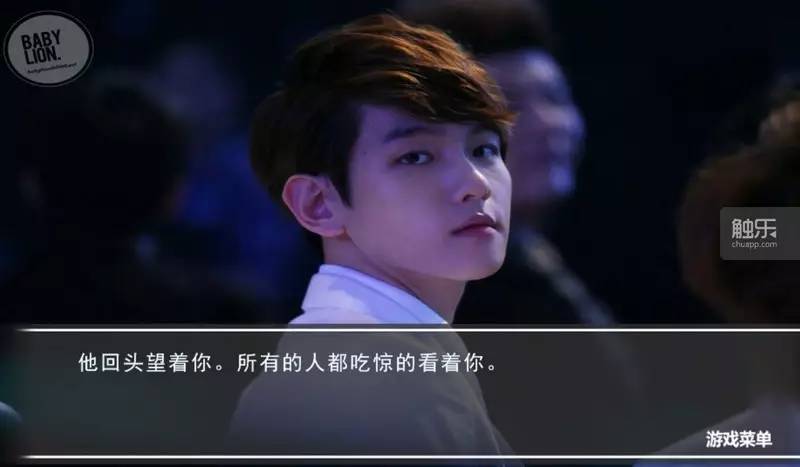 这是三年前橙光平台上的一款游戏《遇见EXO》,虽然流程很短,但它是第一款以EXO为主题的游戏,由此也开创了一个全新的派系——偶像游戏。如今,偶像游戏已是橙光平台最热门的分类之一,EXO、TFBoys、ZERO-G,粉丝们为各自的“爱豆”制作了6100多款游戏,在游戏中与他们展开一段段奇遇。