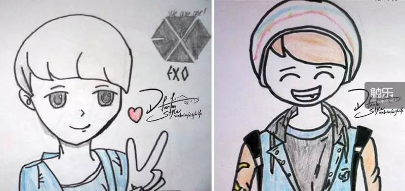 那时的她刚刚接受了一次自体移植,出仓后,她用铅笔把12名EXO成员的漫画肖像画了下来:微笑着比划胜利手势的鹿晗、捧着生日蛋糕的边伯贤、头顶宠物狗的吴亦凡。