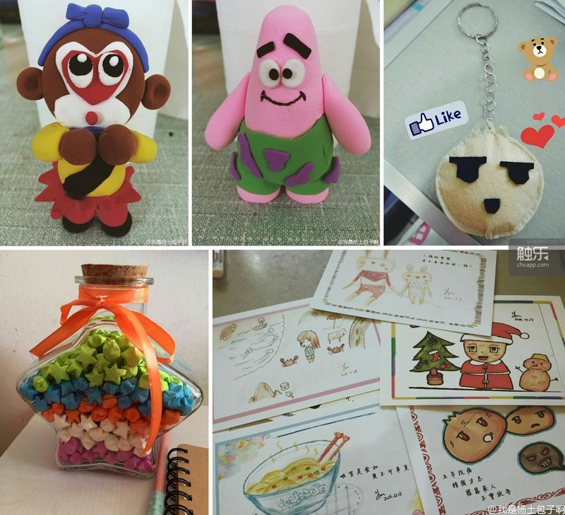 今年1月,杨蒙为她的小店添加了一些新品:她亲手折的幸运星、千纸鹤,以及手工缝制的包子造型的不织布钥匙扣。