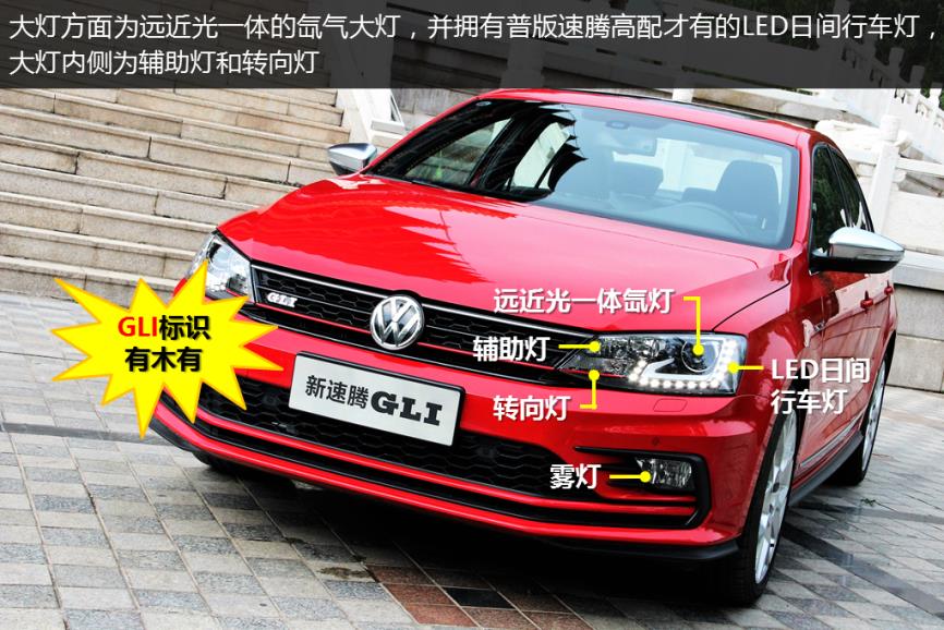先解释下在思域SI、福克斯RS等众多性能车中为什么选择速腾GLI。首先,大众品牌知名度高,上到居委会大妈下到幼儿园小朋友都知道你开的是啥;二是足够低调,满街的大众脸让你大隐于朝小隐于市,路人顶多只认为是外形做过改装的普版速腾,却不了解它波涛汹涌的内心。聊到长相就先为大家介绍下全新速腾GLI的外观,看看它与普版速腾相比有哪些改变。