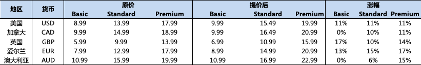 对于美加、英国、爱尔兰等渗透率较高的地区,奈飞的做法是加快提价频率。继2020年10月上一轮涨价之后,今年初,奈飞再次全面涨价。相比于同行在大搞促销,奈飞的动作显得有些另类和迫不得已。没有资金优势、没有第二曲线的奈飞需要挤压成熟市场的变现价值,来为新兴地区的市场竞争提供“弹药”(这也是公司认为未来长期下收入增长的主要贡献来源)。但这也让奈飞在成熟市场,与同行相比,价格优势越来越弱。
