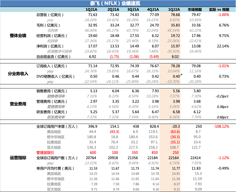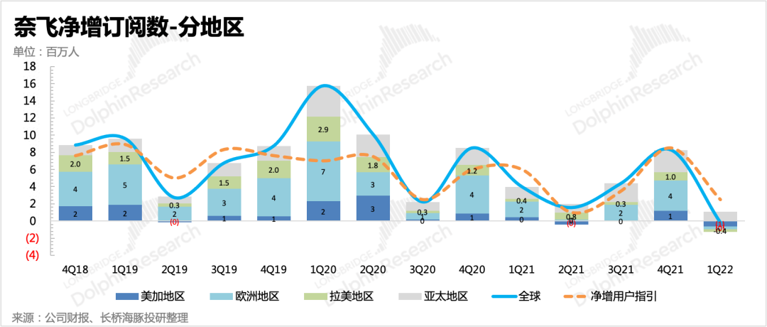 奈飞(NFLX.O)北京时间4月20日凌晨发布2022年第一季度财报。继上季度净增用户指引暴雷后,这次奈飞翻车升级,当季用户数直接环比下降了!