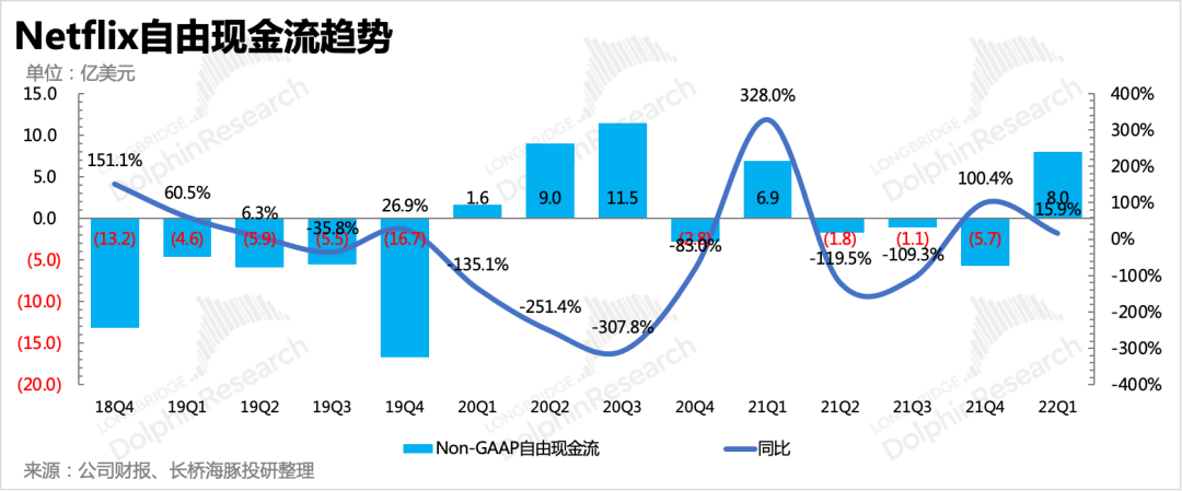 一季度奈飞的毛利率回到正常水平,营销投放也明显克制,使得更多的利润得到释放。但上季度管理层对2022年经营利润率指引为19-21%区间,因此预计后面几个季度,利润率会随内容排期变动而有所削弱。